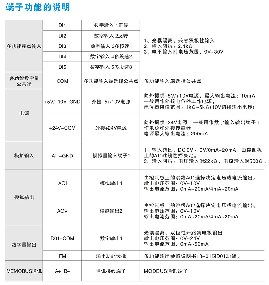 FS1000高性能多功能变频器-端子功能的说明